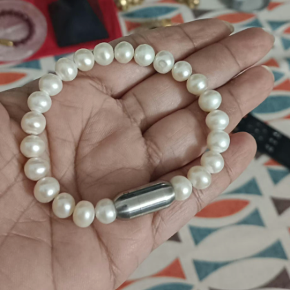 Wrap your wrist in the calming elegance of the Divine Grace Pearl(Moti) Natural Stone Bracelet, thoughtfully designed with our signature MagSnap 3 magnetic closure for a seamless, secure, and stylish experience. Combining the serene charm of natural freshwater pearls with cutting-edge wearability, this bracelet is more than an accessory—it's a reflection of inner peace, strength, and timeless beauty.
