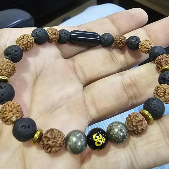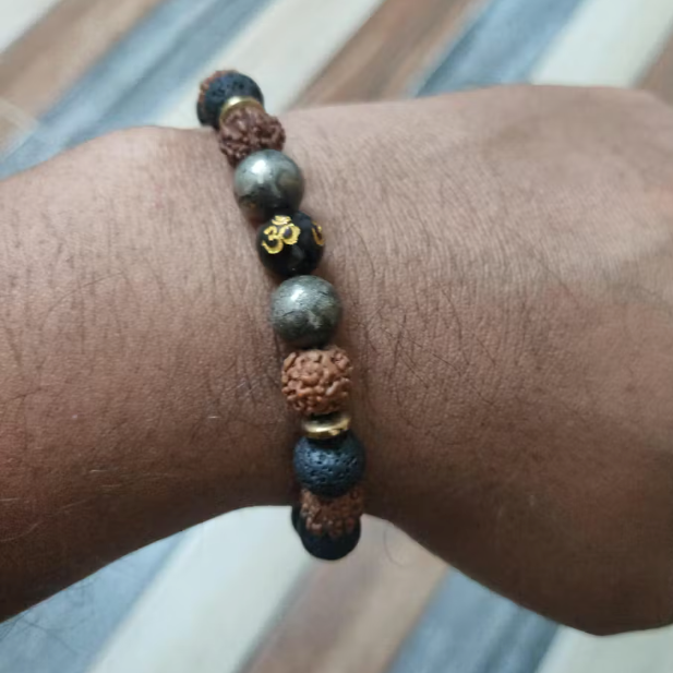 - Spiritual Significance: Combines panchmukhi rudraksha beads, known for their stress-reducing and meditation-enhancing properties, with pyrite, which is believed to attract wealth, and an Om stone, symbolizing divine energy.
